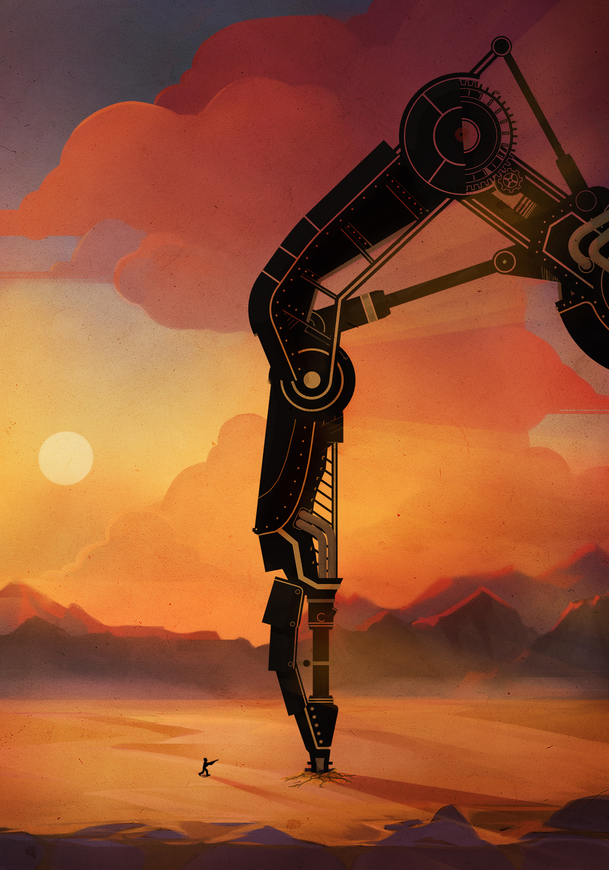 The attack was going as planned until the main forces faced a battle machine never seen before. A giant walking spider, five stories high with large-caliber guns under its belly, crushed the general’s army without any problems.